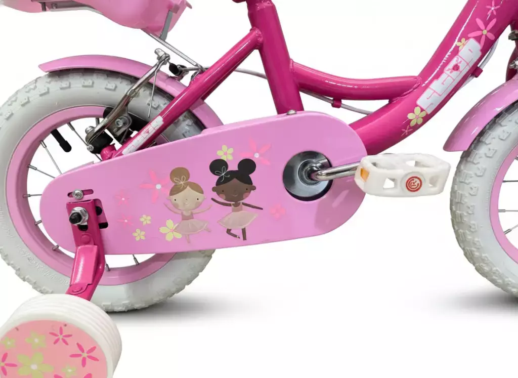 Su pintura presenta detalles únicos inspirados en princesas y bailarinas, con colores suaves y sutiles que transmiten dulzura y estilo. Cada elemento está pensado para que se sientan bellas, cómodas y seguras mientras descubren el placer de andar en bici.